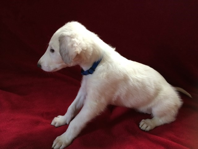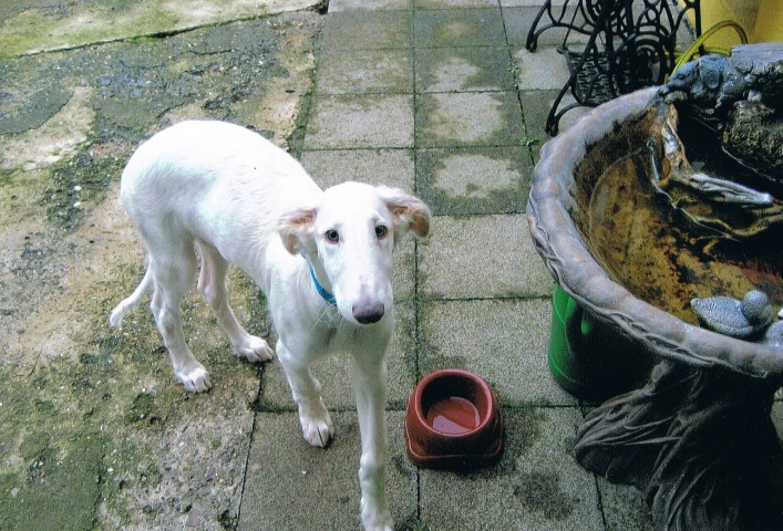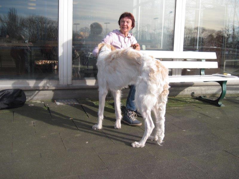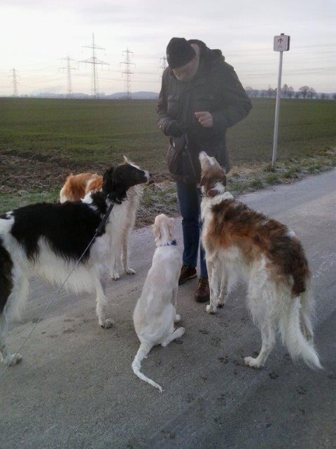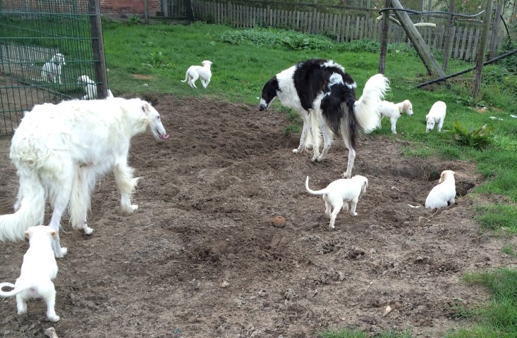 07.12.2014: Augenweide und ihr Bruder Avalon verließen uns am 07.12. und zogen bei ihren neuen Frauchen ein. Wir telefonieren zwar regelmäßig, denn "Kinder" verbinden, doch leider habe ich noch keine Bilder von den beiden. Doch das kommt noch. Spätestens auf den Ausstellungen im Sommer werde ich beide in Natura wiedersehen. 01.03.2015: Erste Fotos von "Augenweide", sie ist auch sehr schön! ![]() ![]() Augenweide auf dem Hunderennbahn: Da möchte sie natürlich schnell laufen und findet es gar nicht gut, für ein paar Fotos an der Leine zu stehen, doch "schön stehen" kann sie schon sehr gut! ![]() 18.04.2015: Augenweide hat ihr Debuüt in Oberhausen-Rheinhausen! ![]() Avalon Avalon ist nach München gezogen und hat in Bogenhausen einen 2 000 m2 großen Garten! Auch am Plattensee besitzt die Familie ein Wochenendhaus mit riesigem Grundstück! Er hat es da sehr gut! Almazka Stepnaja-Purga 12.11.2014: Almazka hatte den weitesten Weg zu ihrem neuen Zuhause und auch sie ist gut angekommen und es geht ihr gut. Von ihr habe ich noch keine Fotos, jedoch regelmäßen Telefonkontakt. Ihr neues Herrchen kann nicht so gut mit dem PC, aber das macht nichts, Hauptsache, es geht ihnen allen gut. Aquamarin Aquamarin wird uns am 01.01.2015 verlassen, er geht zu lieben Freunden und ihn werde ich auch oft wiedersehen.