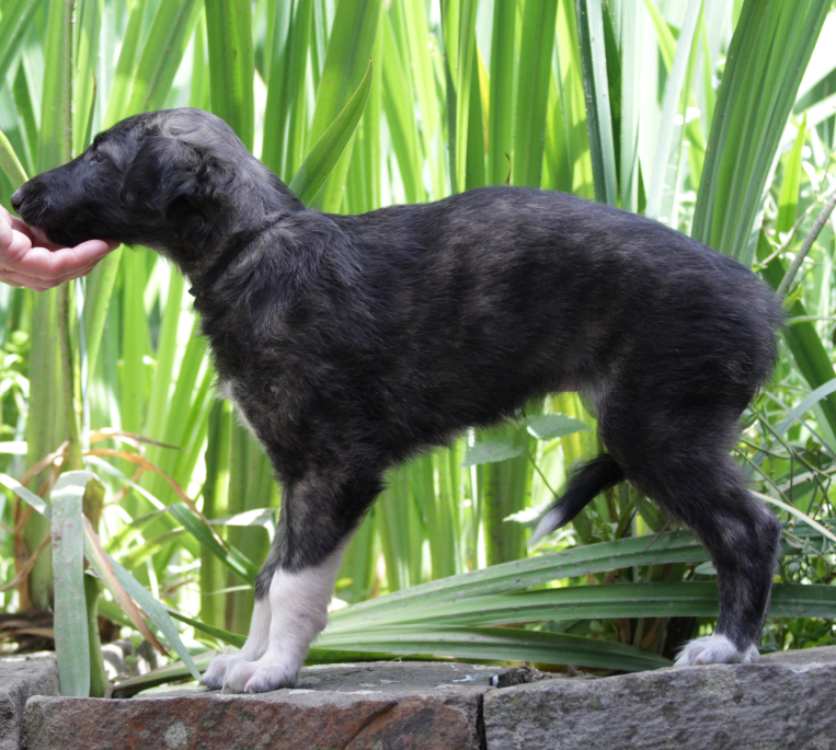 Farbverlauf bei der Farbe: Schwarz-gestromt.Es geht um die Farben der Welpen mit blauem, rosa und schwarzem Halsband. Wir zeigen hier auf, wie die Farbe sich später zeigt am Beispiel von "Ella", eine Tochter von Nitro aus ihrem 1. Wurf. 22.10.2025: 5 Tage alt Hündin in Blau, Hündin in Rosa, der Schöne mit dem schwarzen Halsband Hier der Farbverlauf von "Ella": ![]() Ella und Schwesterchen Nathalie, 1 Woche alt, man erkennt schon die Stromung. ( Die ebenfalls dunkel anmutende Nathalie zeigen wir später auch noch einmal, so, wie sie jetzt aussieht. ) ![]() Ella im Alter von 2 Wochen. ![]() Das ist Ella im Alter von 5 Wochen, immer noch sehr dunkel.