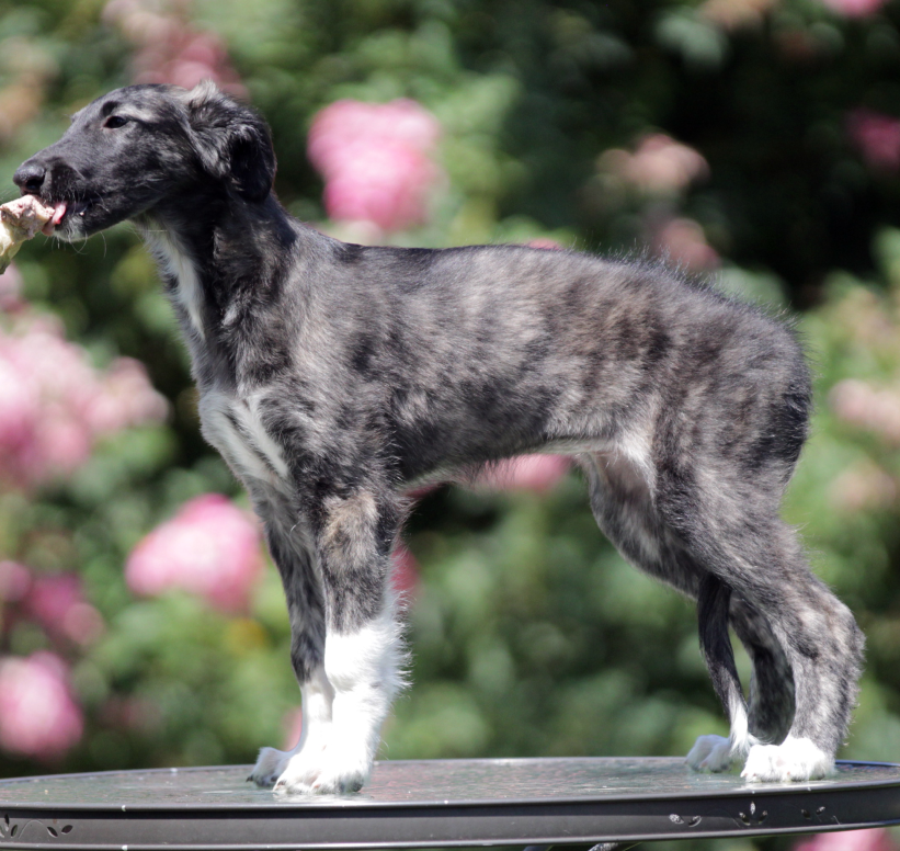 ![]() Das ist ihr Erwachsenenhaarkleid, hier 12 Monate alt. So erhält man ungefähr eine Vorstellung davon, wie die Welpen sich später präsentieren können. Und jetzt noch einmal zu Nathalie, hier 2 Fotos im Alter von 4 1/2 und 12 Monaten.