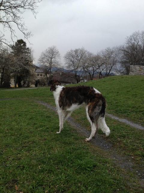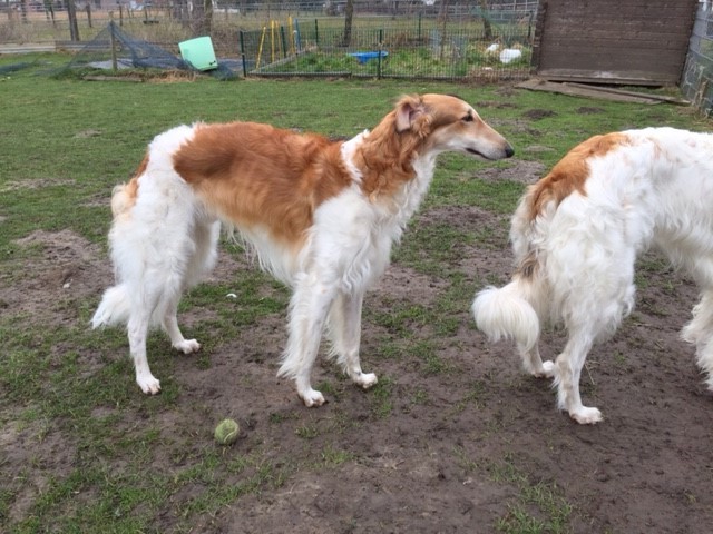 ![]() ![]() ![]() ![]() 26.11.2013: Oleg in seinem Element: Spielen, rumtollen, rennen...... . 29.11.2014: Inzwischen ist Oleg der größte! 04.01.2014: Wir sind ganz schön bunt durcheinandergewürfelt, nicht? ![]() ![]() Ausflug mit Frauchen ... : ![]() ![]() 14.03.2015: Oleg im Stand, eifach ein schöner Barsoi! Opal ist bei mir, Odaloij, Olala und Olessia sind bei Ludger geblieben. Oblonka: 01.12.2014: Oblonka ging auf einen schönen Bio-Hof nach Hamburg Billstedt. Doch ihr Herrchen kam irgendwie nicht mit ihr zurecht, sie ist nun mal kein Hof- und Hütehund. Wir hatten schon einen Termin abgemacht, sie wieder abzuholen, doch er wollte sie nicht mehr zurückgeben. Wir kamen nicht mehr ran. Doch Oblonka hatte Glück und wir auch: Sie tauchte plötzlich bei Marie auf, die mir das auch gleich mitteilte. So hat sie es sehr gut und wir bekommen regelmäßig von ihr zu sehen und hören! Das freut mich ungemein, denn nichts ist schlimmer, als wenn die "Kinder" verschollen sind!