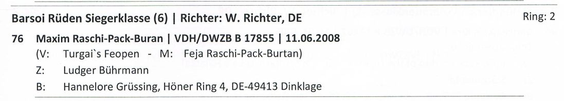 Championklasse: Maxim : V1, Niemen: V3, Offene Klasse: Berendaij: V1, Nabat: V2