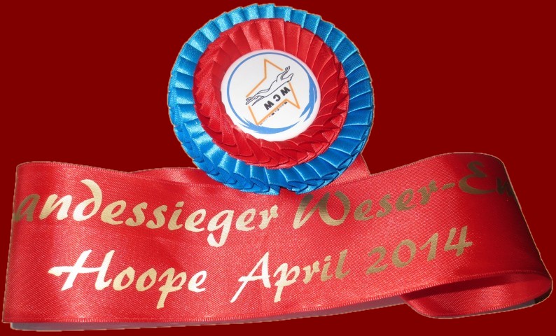 Richterin: Fr. Peschges, D in der Jüngstenklasse Opal:VVSp 1, Jüngsten-BOB, offene Klasse Nabat: V1, VDH, CAC, Championklasse Niemen: V1, VDH, BR, BOB, Landessieger Weser-Ems 2014 Niemen hat gewonnen! Nabat hat gewonnen! Das Stechen um den "Besten Rüden" gewann Niemen ( mit Joyce ) Opal hat gewonnen! Stechen um das "BOB" und dann der Ehrenring.