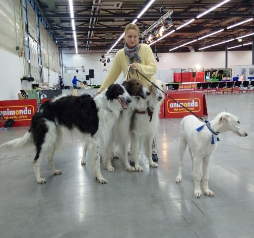 Richter: Hr. Andre van den Broek, NL Opal: in der Zwichenklasse: V1, VDH, Res. CAC, Berendaij: offene Klasse: Sg 2, Niemen: Championklasse: V1, VDH Außer der Wertung: Amethyst Arkadij: VV1