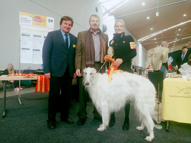 ![]() Karlsruhe, 12.11.2016 Richter: Elmar Sistermann, D Richteranwärter: Herr Blessing, D Amethyst in der Championklasse: V1, VDH, CACIB, BR, BOB zusätzlich die Titel: Alpensieger und Sieger Baden-Württemberg ![]() ![]() Karlsruhe, 13.11.2016 Richter: Manfred Langer, D Richteranwärter: Herr Blessing, D Amethyst in der Championklasse: V1, VDH, BR, BOB, BIS 2 und den Titel "Sieger Karlsruhe" ![]() Richterin: Frau Assenmacher-Feyel Amethyst: BIS 2 ![]() |
