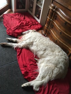 Das Leben im Haus in Soest: Das Haus habe ich in 1999 selbst entworfen und in 2000 bin ich eingezogen. Ich habe meinen Mann kennengelernt und so sind wir 2001 nach Großenkneten gezogen. Doch ab Oktober 2016 wohnen wir wieder in Soest...... Die "Hausordnung" jedoch bleibt immer die gleiche! Unsere Barsois leben mit uns zusammen. Wir nennen sie daher auch gerne "unsere haarigen Familienmitglieder". Und somit haben sie auch "Rechte und Pflichten" Sie haben z. B. das Recht, sich im ganzen Haus, außer unserem Schlafzimmer und Ankleidezimmer, aufhalten zu dürfen, wann immer sie wollen, draußen oder drinnen zu sein. Zu ihren wenigen Pflichten gehört: Besucher zu melden und Einbrecher abzuschrecken. Und wie es sich für einen richtigen Barsoi gehört, kommen sie den auch nicht nach. Und es gibt Regeln, an die sich alle halten müssen: Im Haus wird nicht gepupt, es werden keine Möbel angefressen, nicht markiert und auch nicht gestritten! So ist ein harmonisches Miteinander gewährleistet.