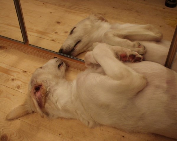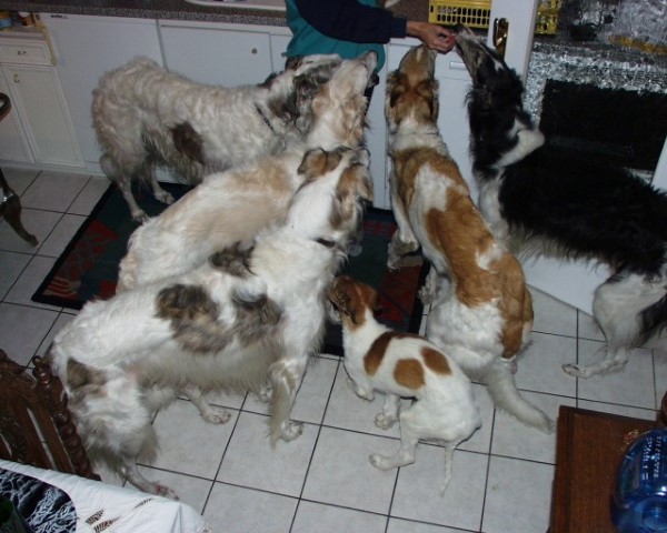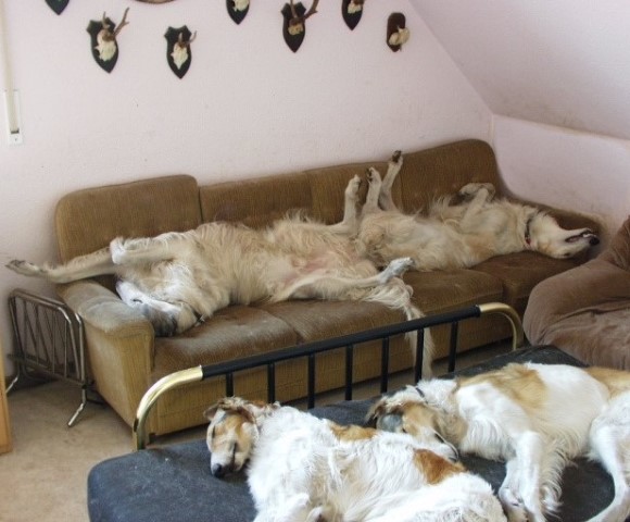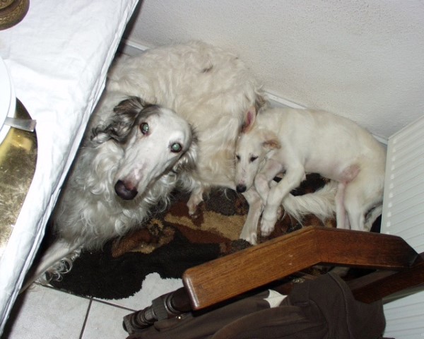 Das Leben im Übergangshaus in Großenkneten: 2001-2003. Da mein Mann lieber im "Norden" lebte, zogen wir nach unserer Heirat übergangsweise in ein Haus in Großenkneten. Die Pferde wohnten in einer Privatreitanlage, die Barsois im Haus bei uns. Von dort aus suchten wir nach einem Resthof und wurden in Dinklage fündig...... ![]() ![]() Das eigene Hundezimmer....., ![]() und trotzdem "schleicht hund sich nur zu gerne ins Menschenschlafzimmer...... ![]() ![]() ![]() In der Küche läßt es sich erfahrungsgemäß gut leben...... ![]() ![]() sowohl unter, als auch am Tisch! ![]() ![]() Und einen großen garten hatten sie natürlich auch...... ! ![]() |